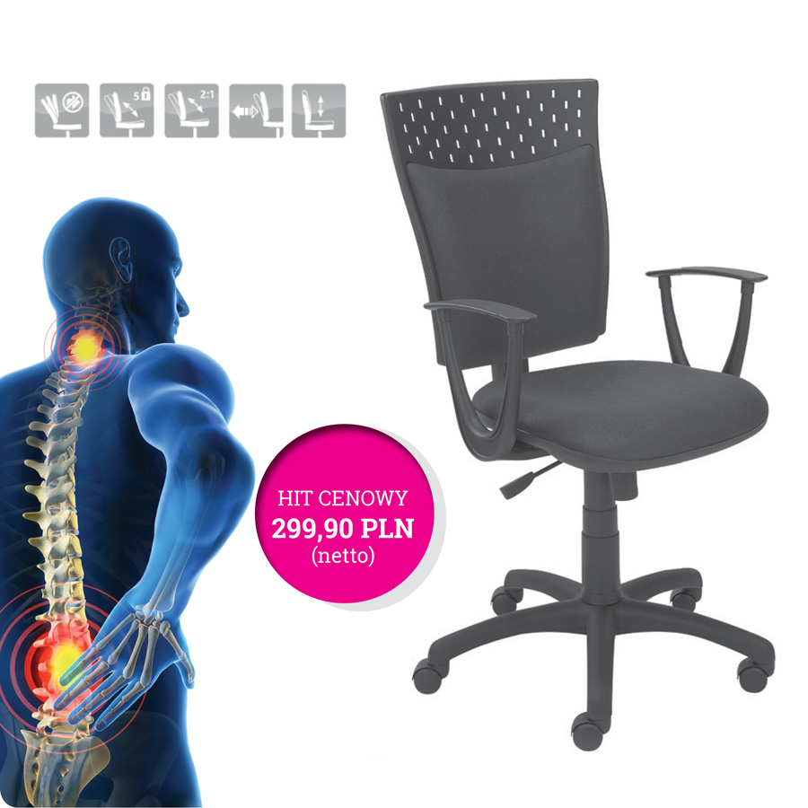 siatka / tkanina czarna, stałe podłokietniki (93K106Y) 374,00 460,02 zł Do koszyka